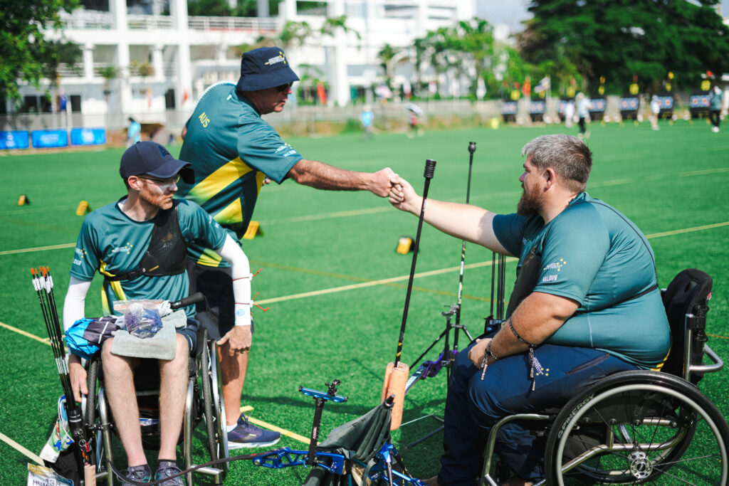 The recurve men’s doubles team of Tom and Stu finished top 4 to also progress through to their first international medal match in the bronze medal match, unfortunately they went down to the Republic of Korea.